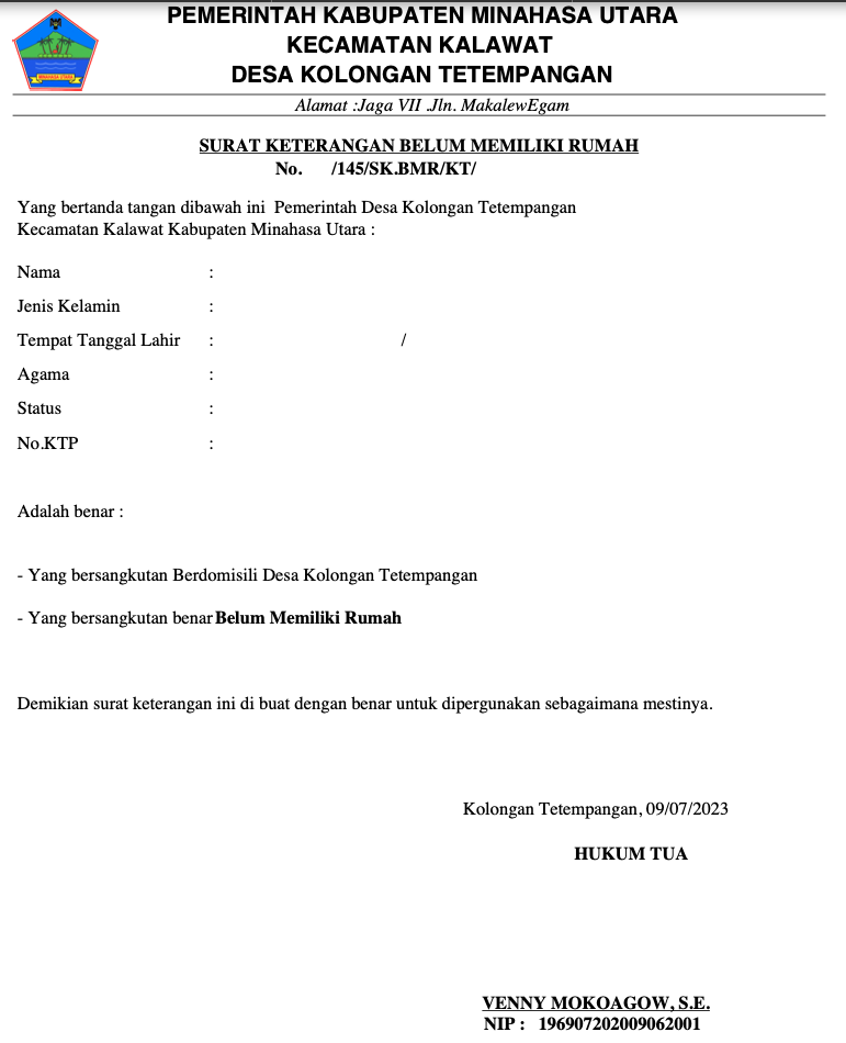 Surat Keterangan Belum Memiliki Rumah